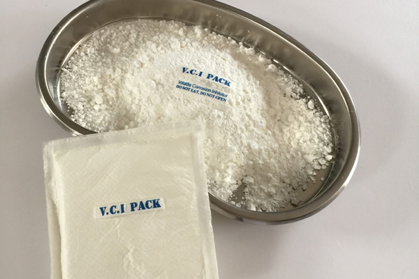 氣相防銹粉末多種特制的氣相緩蝕劑原料按一定配比均勻混合加工而成,具有水溶性,是一種新型的氣化性防銹材料。在密閉空間內,VCI經氣化揮發(fā)到金屬的每個角落,吸附在金屬表面形成致密保護膜層從而起到防銹的作用